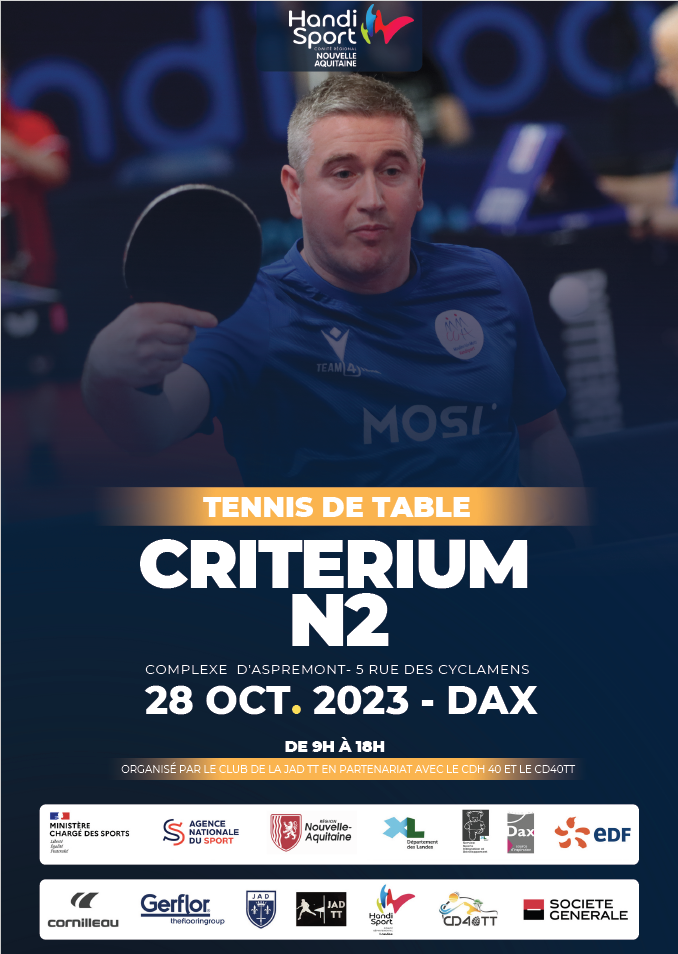 En avant première l'affiche pour le 1er Tour de Critérium Handisport à Dax le Samedi 28 Octobre 2023